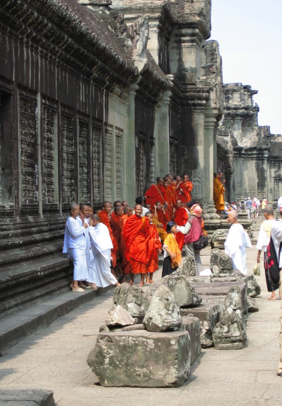 We headed out to Angkor Wat and got our first glimpse of Siem Reap in the daytime. We immediately liked it. It was much more charming than any other town/city we had been to on this trip. Lucky for us we arrived at Angkor Wat early enough, so that there were not too many people. We enjoyed walking around and particularly listening to Ponheary’s stories of the Khmer Rouge – fascinating.