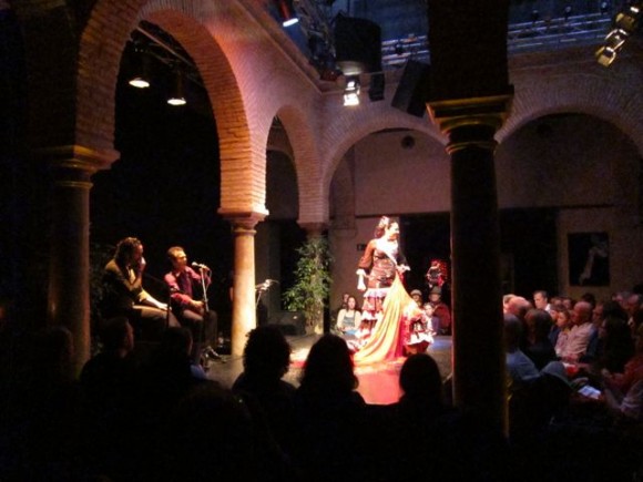 At 7pm we had a reservation at Museo de flamenco for a flamenco show. Marta had actually recommended a different flamenco show, but it is in an uncovered patio, and it definitely seemed as though it might rain so we asked the hotel for a recommendation and they chose this one. In addition, to the show there is also a museum, but we did not go inside. We had the hotel call ahead to make our reservation. We arrived about 6:30pm and most of the seats were already taken. You probably need to arrive closer to 6:15 to assure a good seat. A small but beautiful venue with one singer, one guitarist and a male and female dancer. The show lasted about an hour and was quite good. I believe there is another show at 8:30pm.